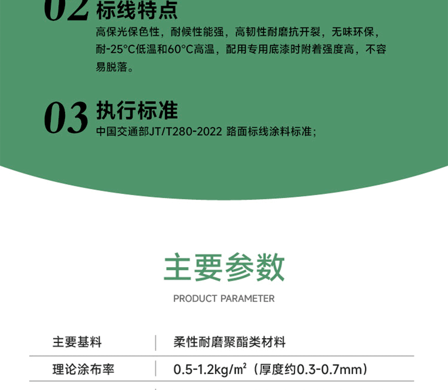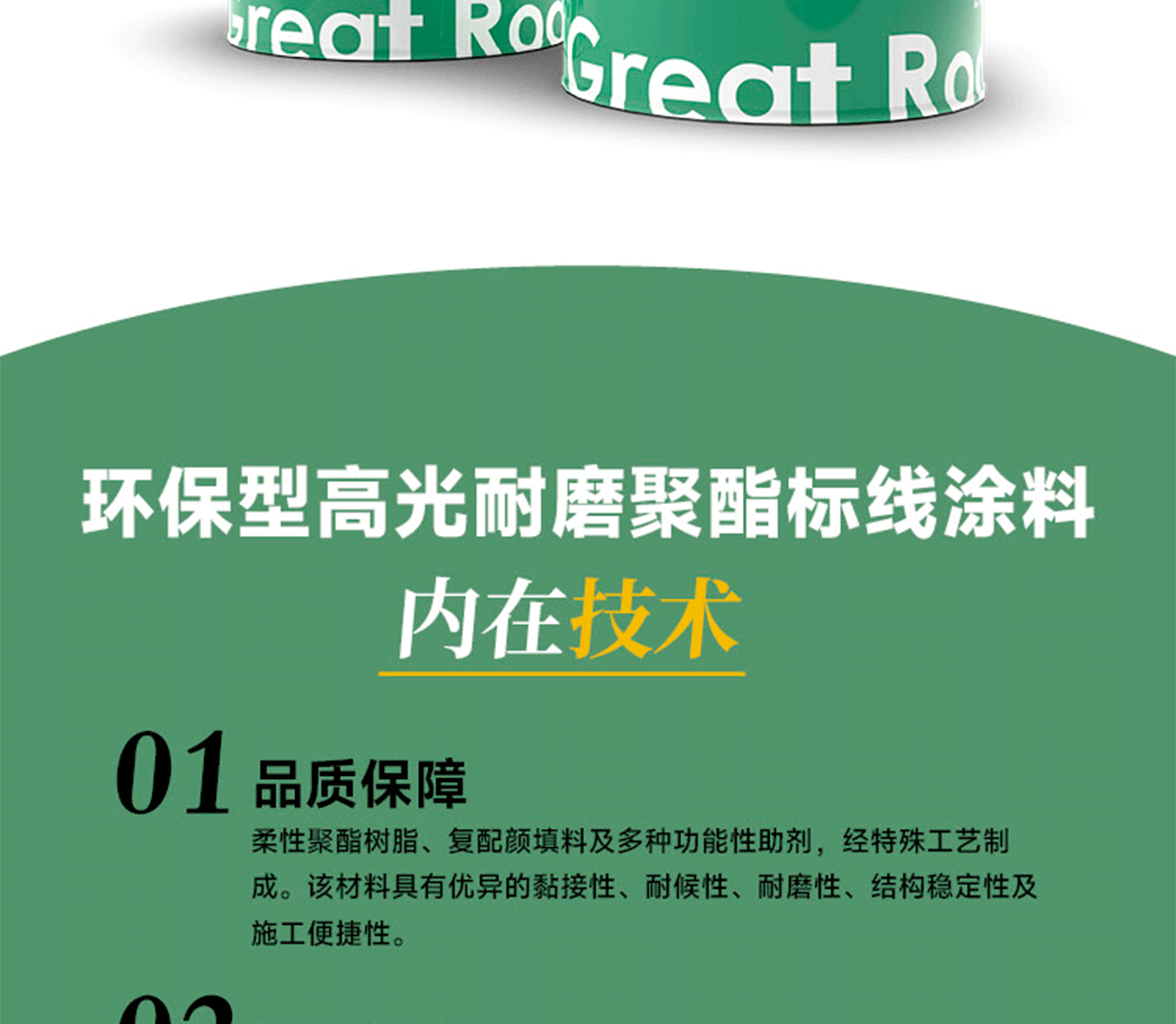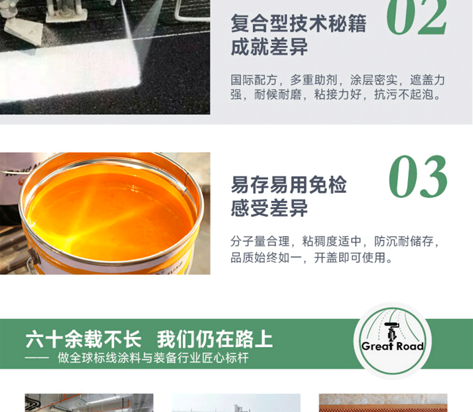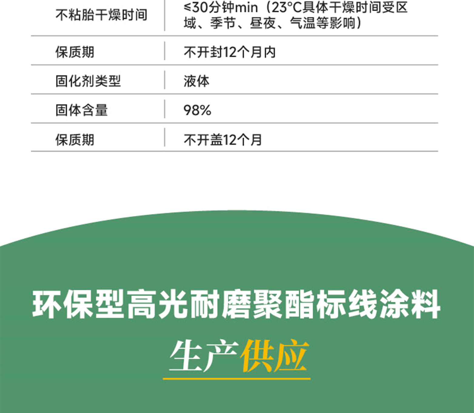 ?專家測評:環(huán)保型高光耐磨聚酯標(biāo)線涂料,由柔性聚酯樹脂、復(fù)配顏填料及多種功能性助劑,經(jīng)特殊工藝制成。該涂料具有優(yōu)異的黏接性、耐候性、耐磨性、結(jié)構(gòu)穩(wěn)定性及施工便捷性。